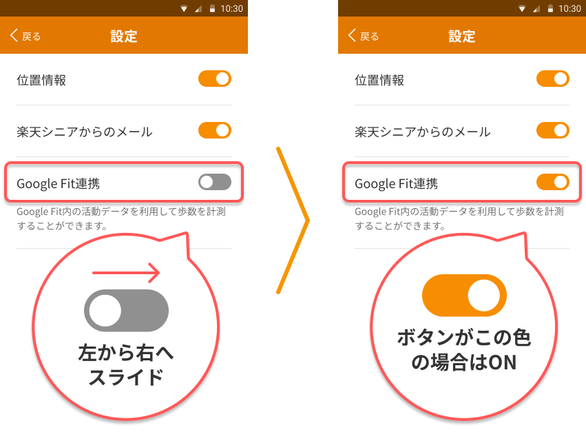 - Google Fitの設定画面で、Activity trackingを有効にする